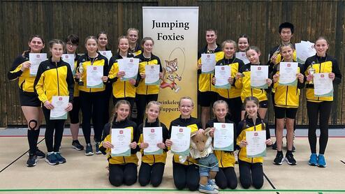 Heute gingen in Krefeld insgesamt 21 Springerinnen und Springer des VSTV bei der Landesmeisterschaft im Rope Skipping an den Start. Die Konkurrenz war anspruchsvoll, trotzdem konnten sich unsere Teilnehmenden in mehreren Altersklassen überzeugend behaupten. In der Altersklasse 1 holte sich Ian Schwarz bei den männlichen Startern souverän den ersten Platz. Bei den weiblichen Starterinnen erkämpfte sich Mara Schellhoff einen ordentlichen dritten Rang. In der Altersklasse 2 sicherte sich Kevin bei den männlichen Teilnehmenden den ersten Platz und damit die Qualifikation für die Deutsche Meisterschaft. Bei den weiblichen Starterinnen erreichte Luisa Schmidt einen dritten Platz. In der Altersklasse 3 setzte sich Emma Kerkhoff mit einem starken ersten Platz durch und qualifizierte sich ebenfalls für die Deutsche Meisterschaft. Leah Steinmüller belegte hier den dritten Platz und konnte zusätzlich den DU-Cup für sich entscheiden. In der AK 4 zeigte Mala Stuhlmann eine konstante Leistung und erreichte einen dritten Platz. In der AK 5 holte sich Sophia Söhnchen ebenfalls einen dritten Platz und rundete damit die Ergebnisse der jüngeren Klassen ab.