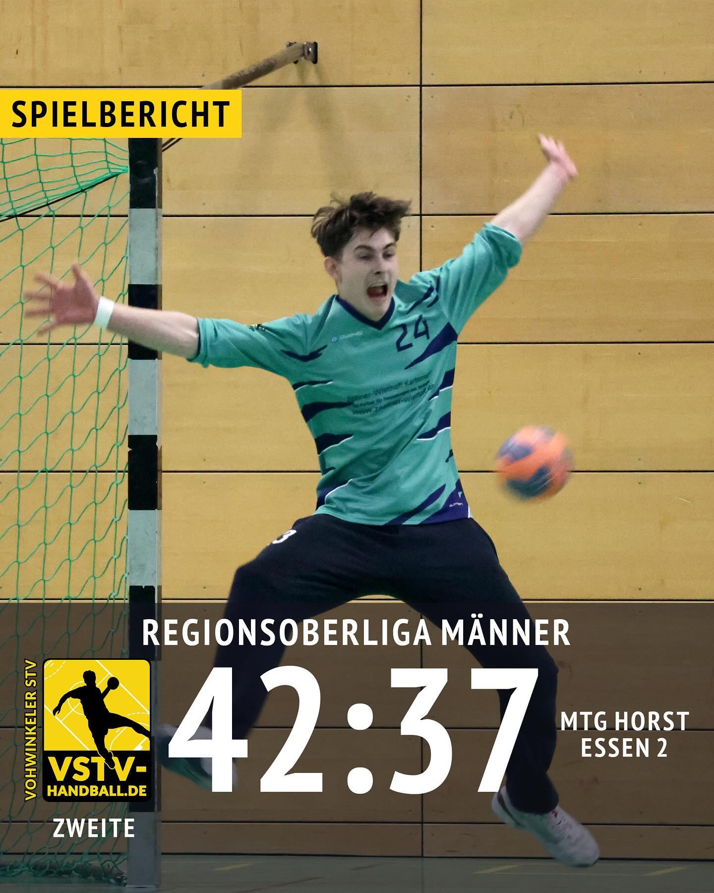 Nach dem Seitenwechsel hielt man die Gäste zunächst auf Distanz. Gegen Mitte der zweiten Halbzeit schlichen sich jedoch Fehler ein und Essen verkürzte auf zwei Tore. Mit einem starken Schlussspurt stellten die 🦊 ihren Vorsprung aber wieder her. Besonders Torhüter Leon Theis glänzte mit zahlreichen Paraden und Gegenstoßpässen und krönte seine Leistung, indem er als mitspielender Torwart im letzten VSTV-Angriff die offensive Gäste-Deckung überwand. Es folgte noch ein Essener Wurf ins verwaiste Tor zum 42:37-Endstand. Fazit: Ein verdienter Sieg dank einer starken und geschlossenen Mannschaftsleistung, bei der die ZWEITE gerade zum Schluss auch ihre große kämpferische Qualität zeigte.