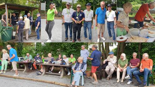Am Samstag den 3. August startete das Jahresturnier der Bouleabteilung pünktlich um 11 Uhr. Man hatte schon wegen Regen um eine Woche verschieben müssen. Zwei Pavillons wurden trotzdem aufgebaut um das umfangreiche Catering zu schützen. Fast alle angemeldeten Mitglieder waren gekommen und freuten sich auf ein spannendes Turnier. Bei 23 aktiven Spielern wurde leider mit drei Freilosen bei jeder der vier Doublett-Runden gespielt und konzentriert ging es sofort zur Sache.