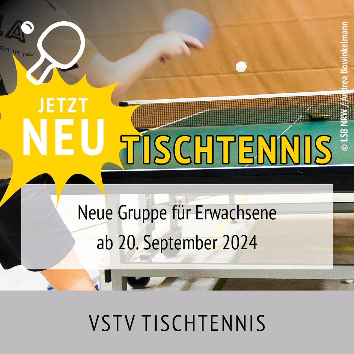 Interessierte melden sich bitte vorab beim Übungsleiter Andreas Riese (tischtennis@vstv.de) oder beim Mitgliederservice 0202-736067.