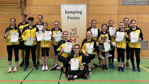 Die Jumping Foxies gingen mit insgesamt 17 Springerinnen und Springern an den Start und zeigten durchweg gute Leistungen. Hierbei wurden auch einige Podestplätze erreicht. Alle schafften die Qualifikation für die diesjährige Landesmeisterschaft im Einzel. Herzlichen Glückwunsch! 👏🏻🏆#ropeskipping #jumprope #wettkampf