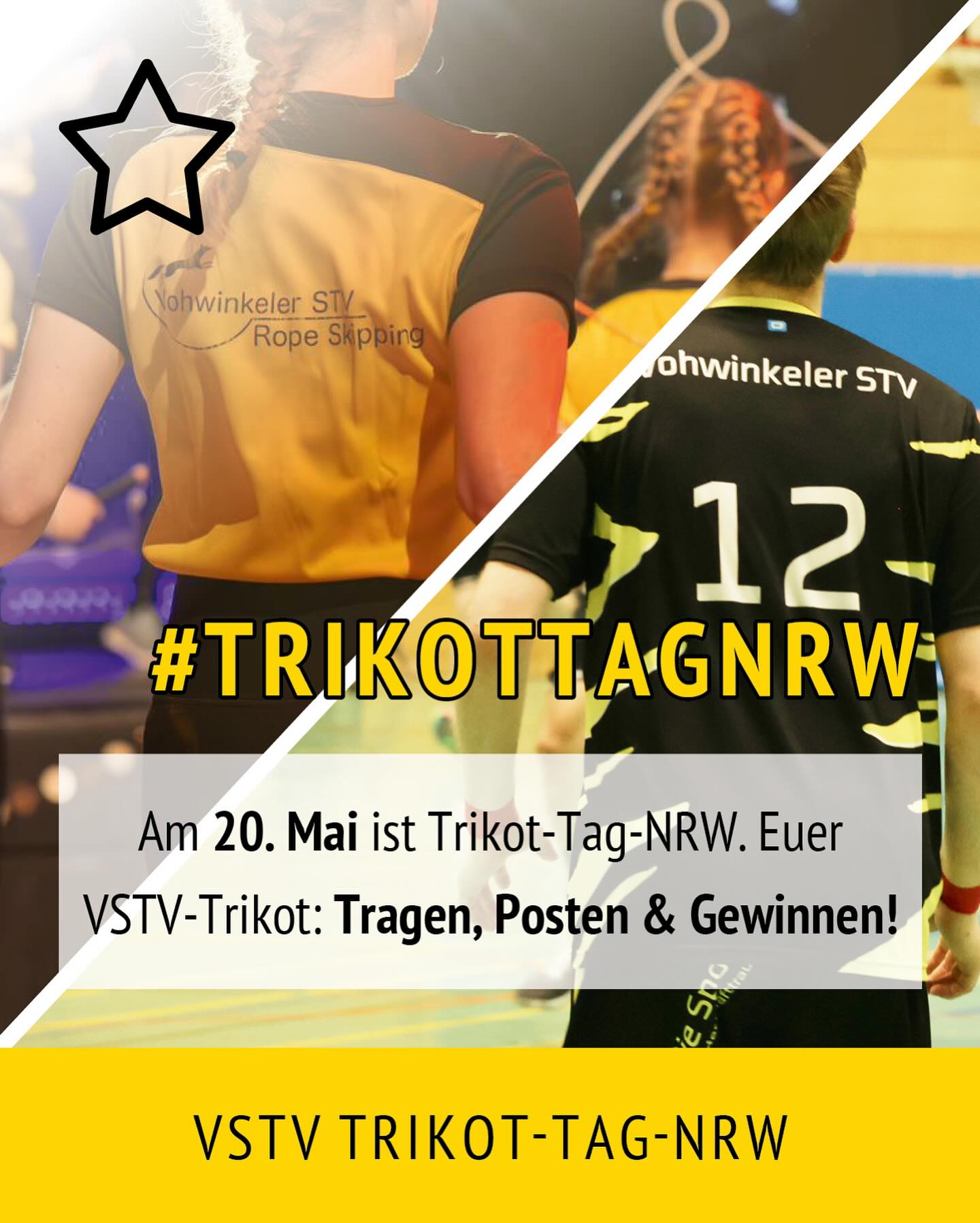 Vereinstrikots stehen für Leidenschaft, Gemeinschaft und Zusammenhalt. Sie zeigen, mit welchem Verein oder welcher Mannschaft Ihr Euch verbunden fühlt. Ihr tragt sie mit Stolz. Grund genug, wieder einen eigenen Tag, der ganz im Zeichen des Vereinssports steht, gemeinsam sichtbar zu machen: Am 20. Mai ist #TrikotTagNRW! Tragt an diesem Tag das Trikot, das Polo-Shirt oder den Trainingsanzug des VSTV nicht nur während des Trainings sondern auch bei der Arbeit, in der Schule, beim Einkaufen und überall in der Öffentlichkeit, um somit ein Zeichen für den Vereinssport zu setzen.