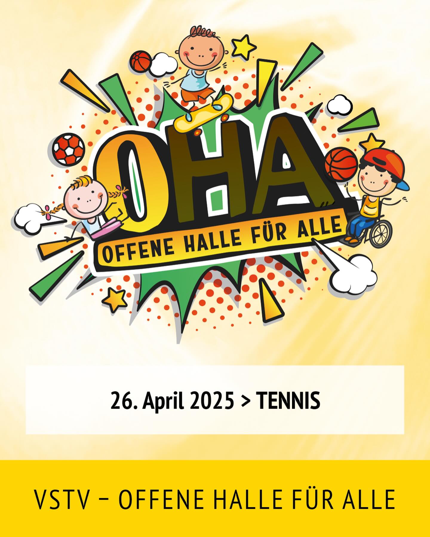 Im Rahmen der Aktionstage „OHA - Offene Halle für alle“ lädt die Tennisabteilung des VSTV zum Kennenlern-Tennis für Groß & Klein ein.
